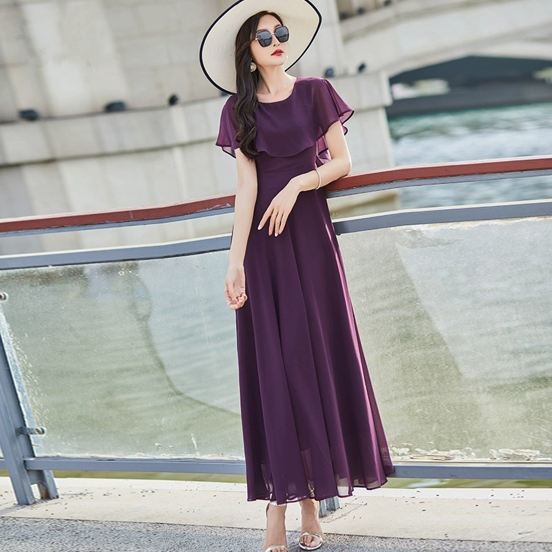 Temperament Purple Chiffon Long Skirt 2024 New Dress Women’s Summer Waist Commuting Slim Chiffon Swing Skirt