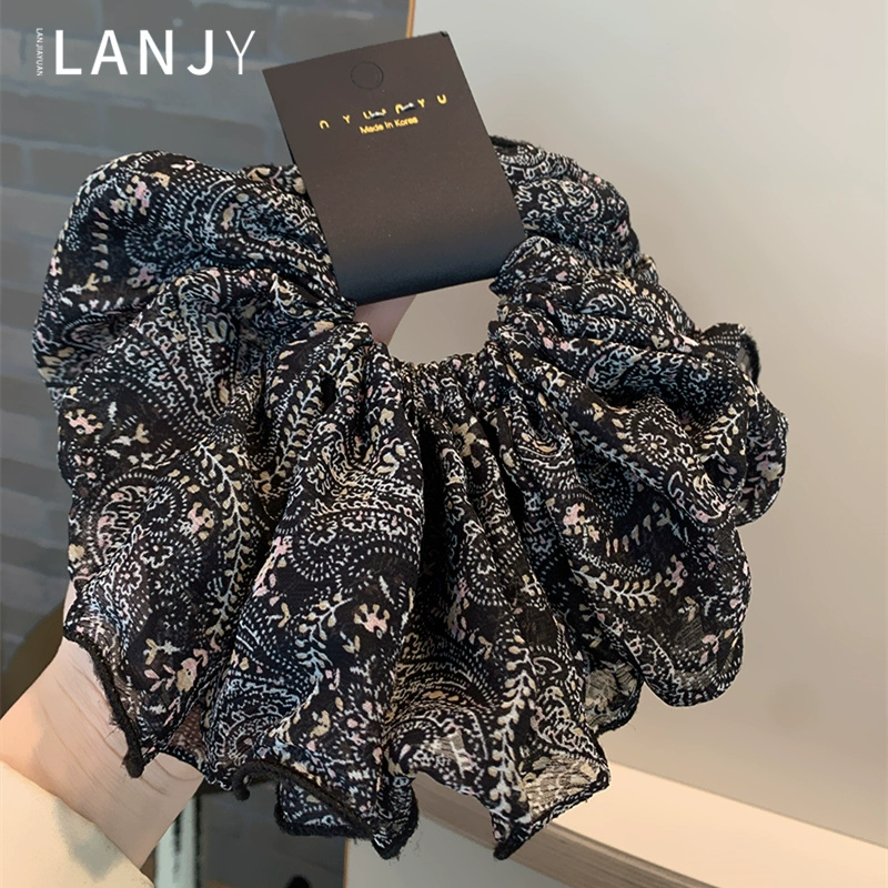 Floral chiffon large pleated durable rubber band hair ring