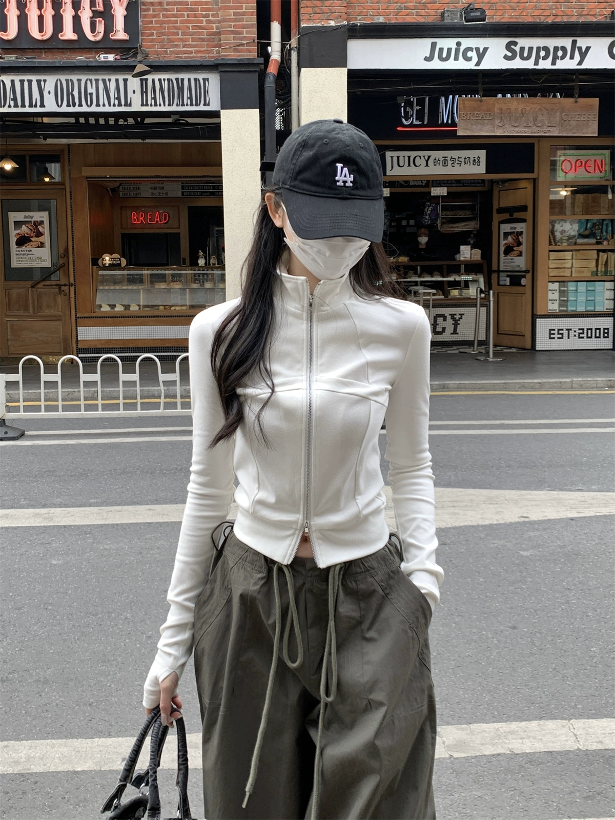Waist slimming double zipper long sleeve casual jacket fishbone