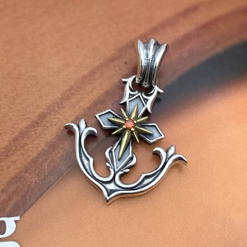 Cross Anchor Pendant S925 Silver Retro Color European and American Fashion Street Hip Hop Pendant for Men and Women Pendant