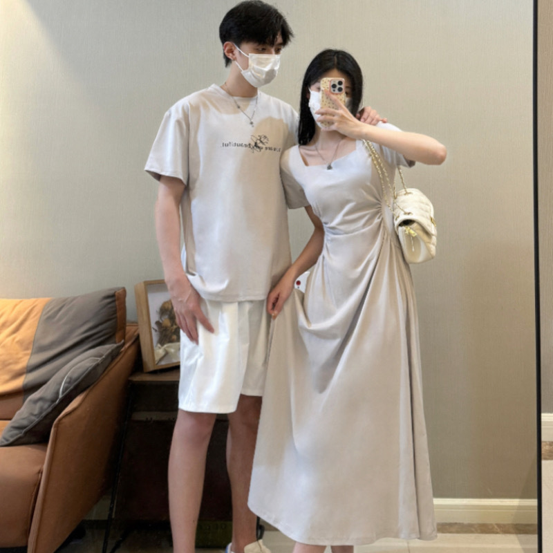 A generation of 2024 Korean version of dress casual slimming waist couples dating simple solid color women’s skirt men’s pants