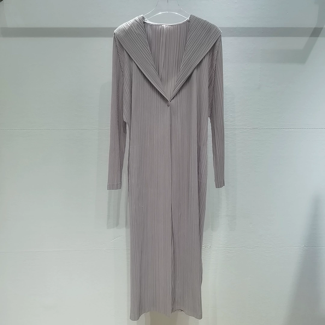 Miyako Clothes Wrinkled Long Trench Coat Women’s Spring and Summer Style Simple High-end Lapel Solid Color Pressed-Close Slim Jacket