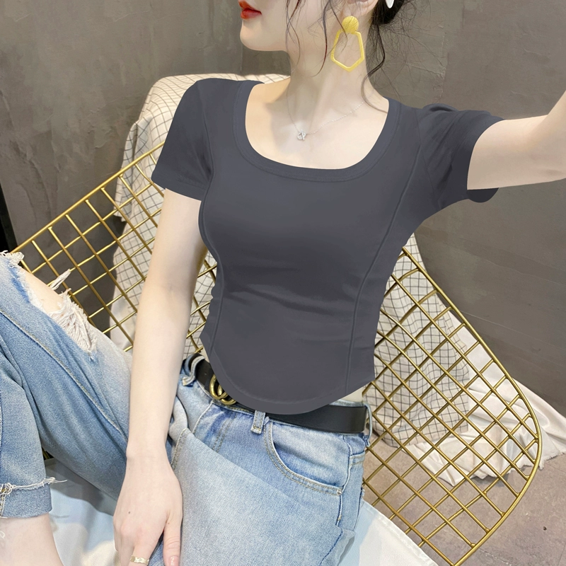 Threading Summer Design Irregular Short -sleeved T -shirt