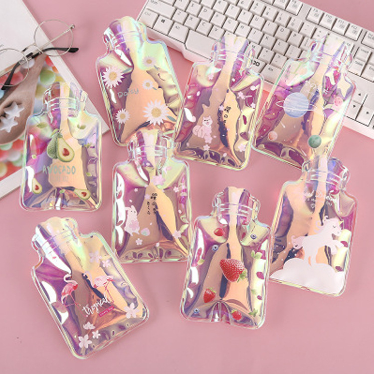 New Laser Colorful Water Filling Hot Water Bag Cartoon Water Filling Warm Water Bag Student pvc Hand Warmer Mini Baby Warmer