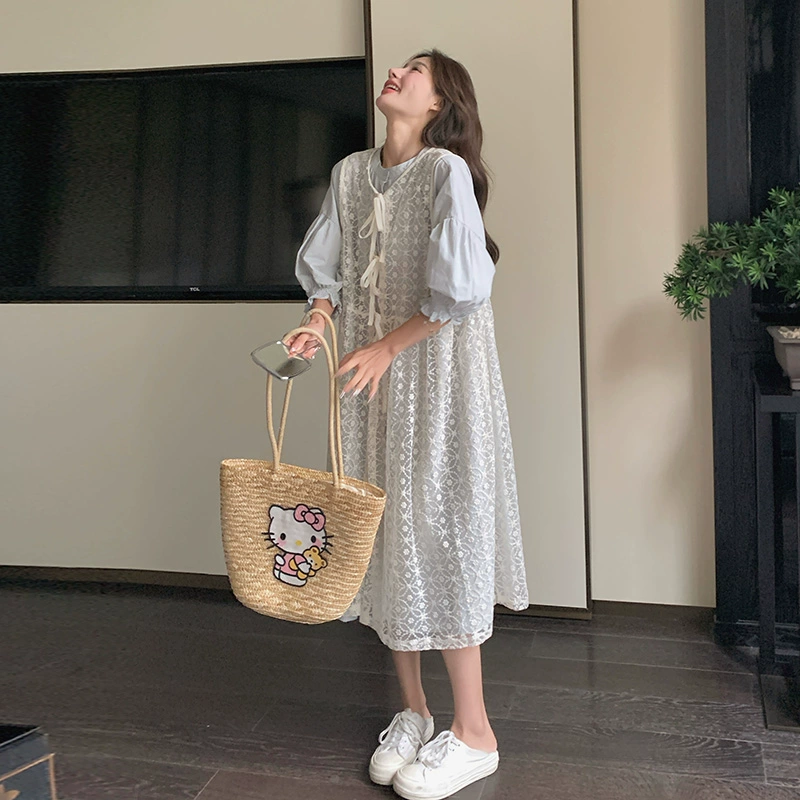 Factory Straight Hair Pregnant Women Summer Dress dress Children’s Mom New French Denim Strand Dress Fake Two-piece Pregnant Women’s Dress