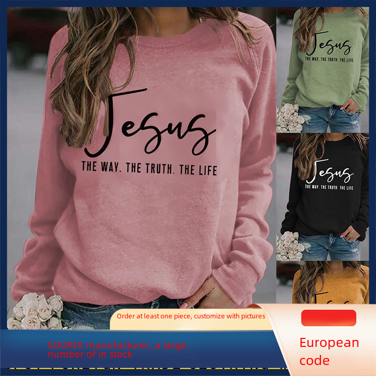 Amazon European and American round neck fashion letters women’s long sleeve THE WAY loose printed sweater