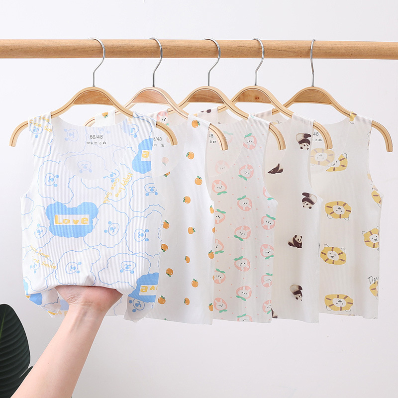 Children’s Vest Summer Ice Silk Stretch Boneless Sling New Outfit Vest Baby Men’s and Women’s Sleeveless Sweatshirt