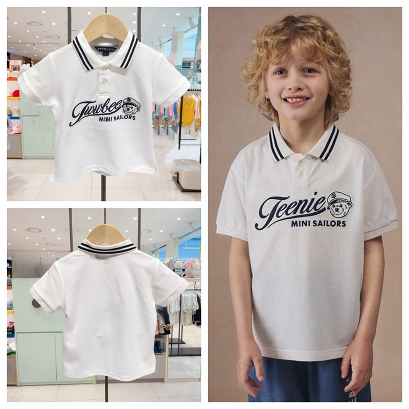 Summer Boys Short-sleeved Polo Shirt T-shirt White Lapel Casual Top Korean Children’s Wear TTHA242405A