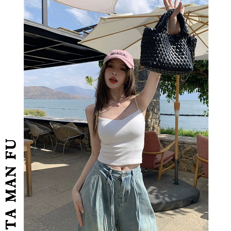 Hollow beautiful back black camisole for women 2024 new sexy inner tube top with breast pad hot girl outfit top