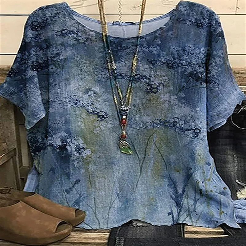 In stock foreign trade new European and American women’s casual loose fashion hot sale short sleeve digital printing round neck top