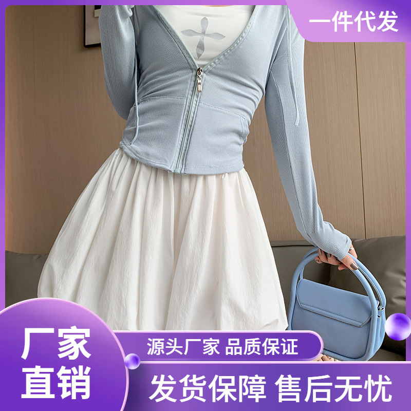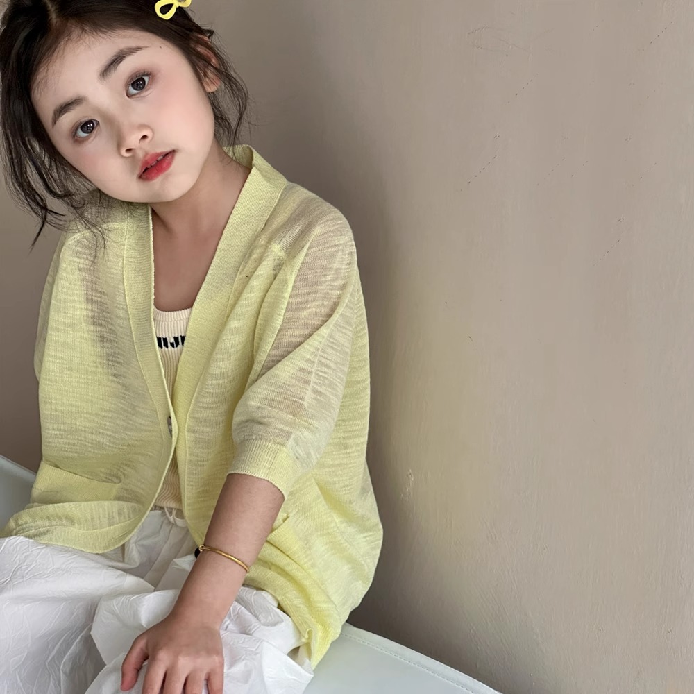 Girls’ Coat Thin 2024 Summer New Children’s Knitted Cardigan Mid-Big Children’s Air-conditioning Clothing Seven-Sleeve Sunscreen Clothing