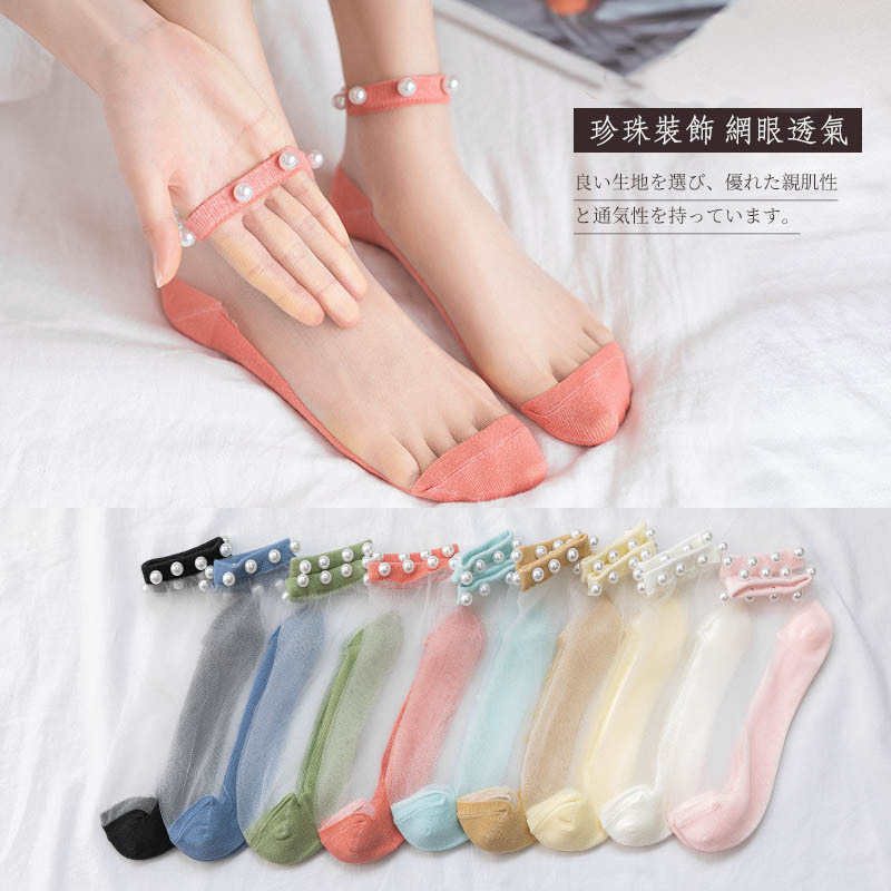 Crystal socks women’s net red Korean thin transparent glass stockings women’s Pearl socks lace invisible mesh socks