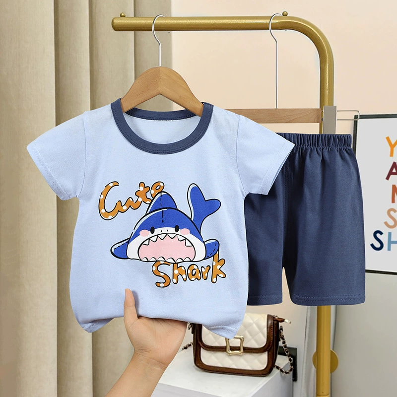 Children’s summer short-sleeved suit, fashionable baby pure cotton T-shirt shorts two-piece set of male and female newborn baby clothes