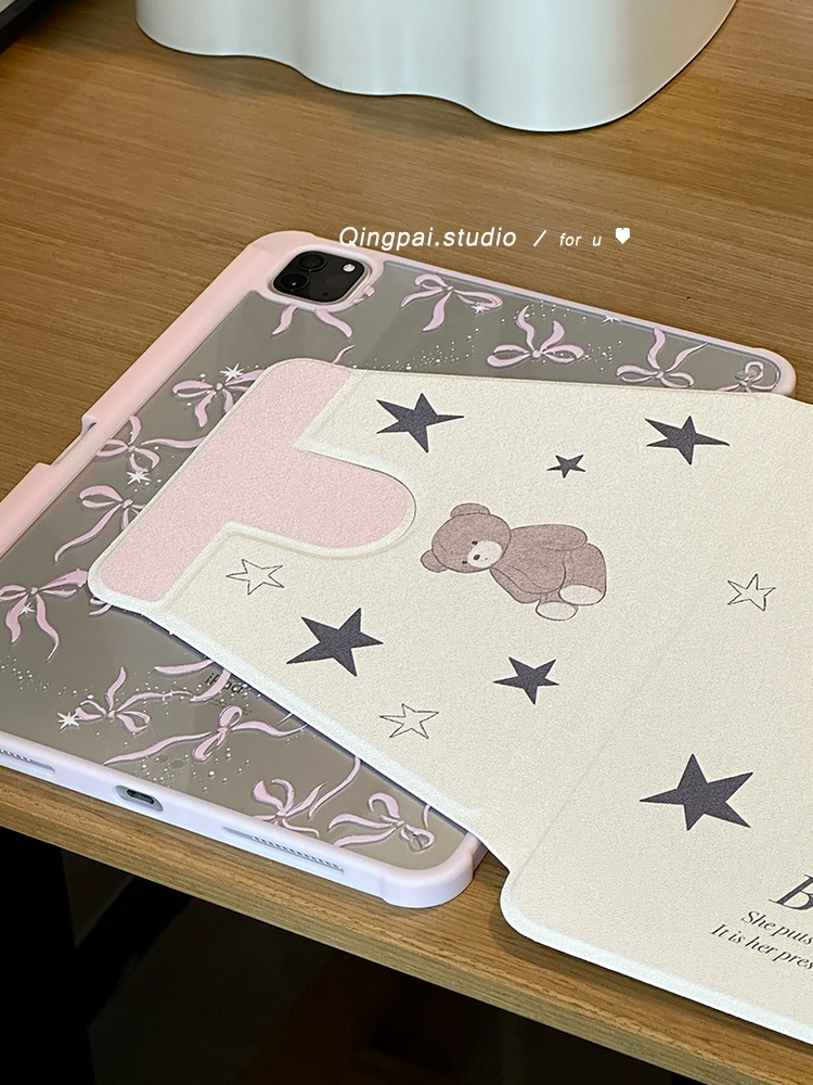 Lightweight ipad protective case new pro protective case ins bow bear air4/5 with pen slot 360 degree rotating stand Apple ipad tablet 10 protective case 9 magnetic suction 12.9 inch