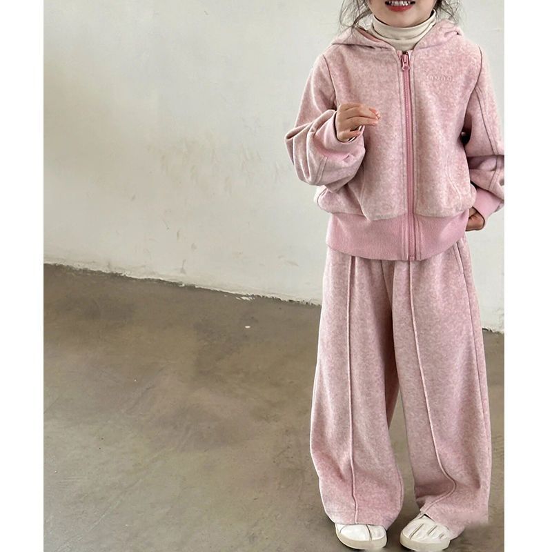 South Korea children’s clothing girls sports suit 2024 autumn children’s hooded zipper shirt straight pants two-piece set tide