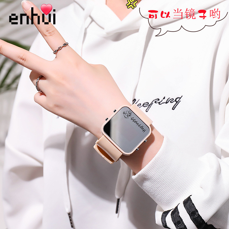 New children’s square mirror watch cute boys and girls students creative trend Korean luminous sports electronic watch