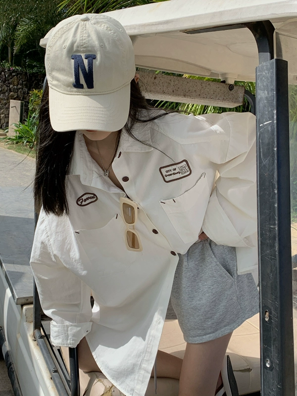 White loose jacket spring and autumn fat mm long-sleeved shirt