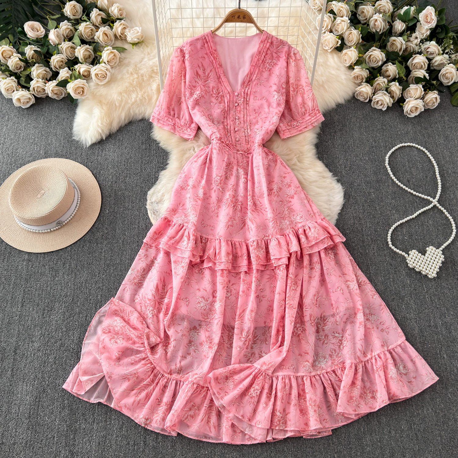 Summer floral dress, tea break, French atmosphere, waist slimming, sweet holiday style dress, forest fairy dress