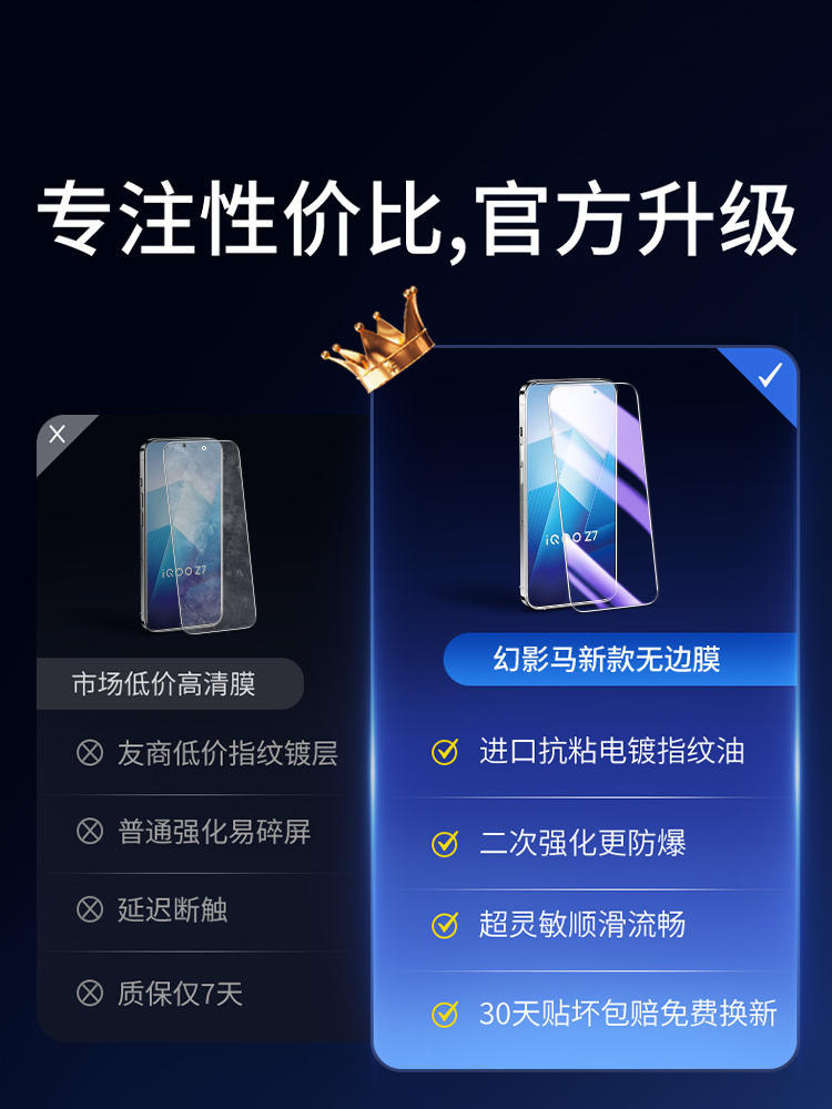 Suitable for iqooz7 tempered film full screen coverage anti-fall glass protection anti-fingerprint vivoiqz7i mobile phone film no white edge high-definition eye protection iq00z7x rigid film anti-blue light screen protection full edge wrapping