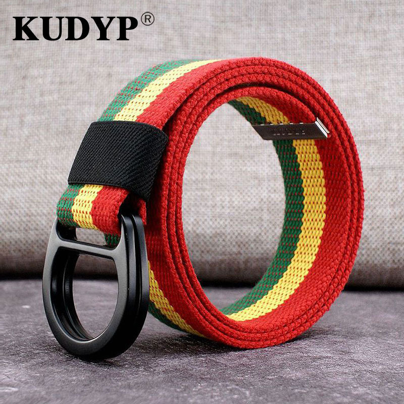Men’s Outdoor Casual Canvas Belt Girl’s Fashionable All-match Double-loop Buckle Belt Lengthened Belt Trouser Belt