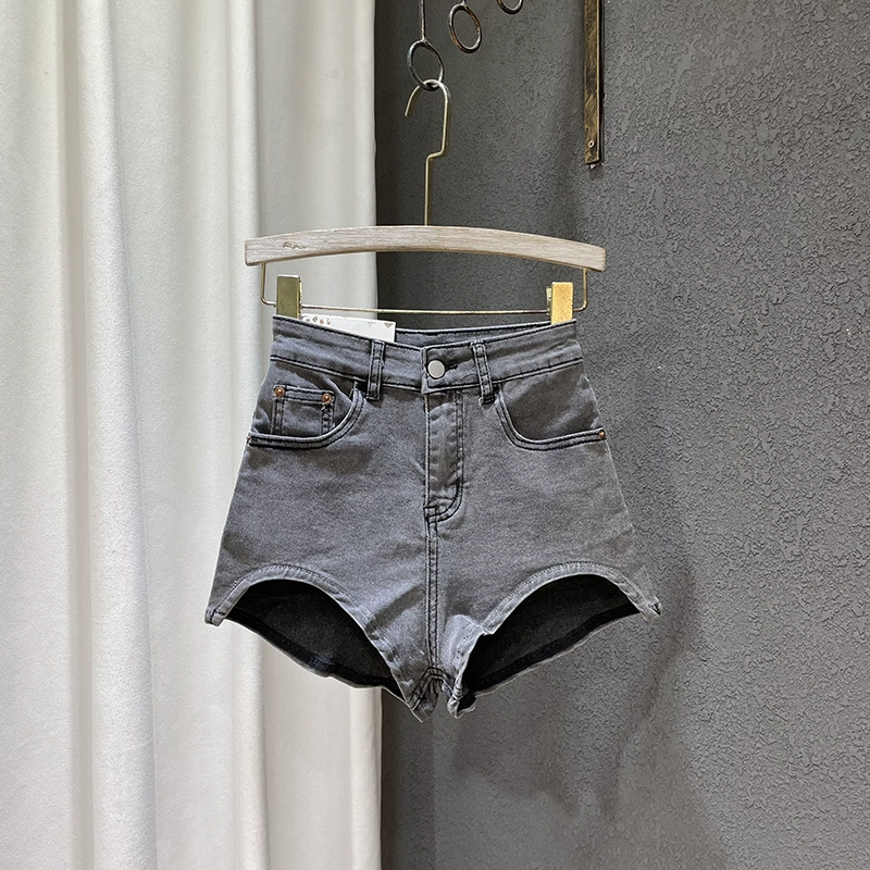 Fashionable slim and versatile high-waisted water-washed denim shorts