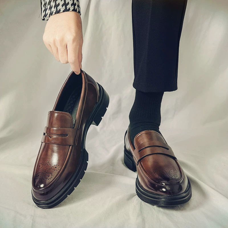 Thick-soled autumn versatile slim-fitting groom leather shoes