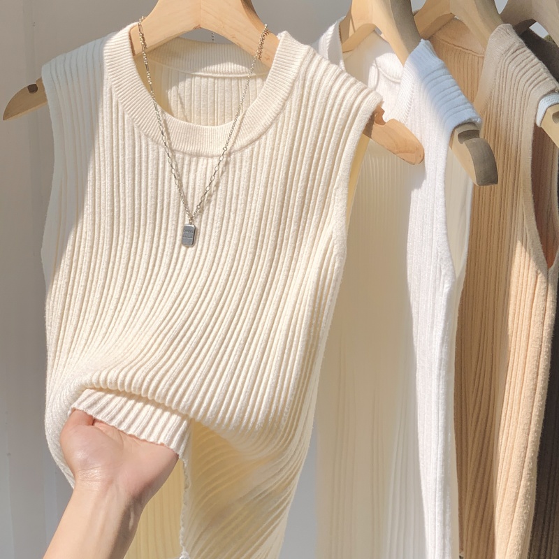 Sleeveless Knitted Threaded Sling Women’s All-match Ice Silk Spring and Summer Outer Wear Pure Desire Lazy White I-shaped Vest Top
