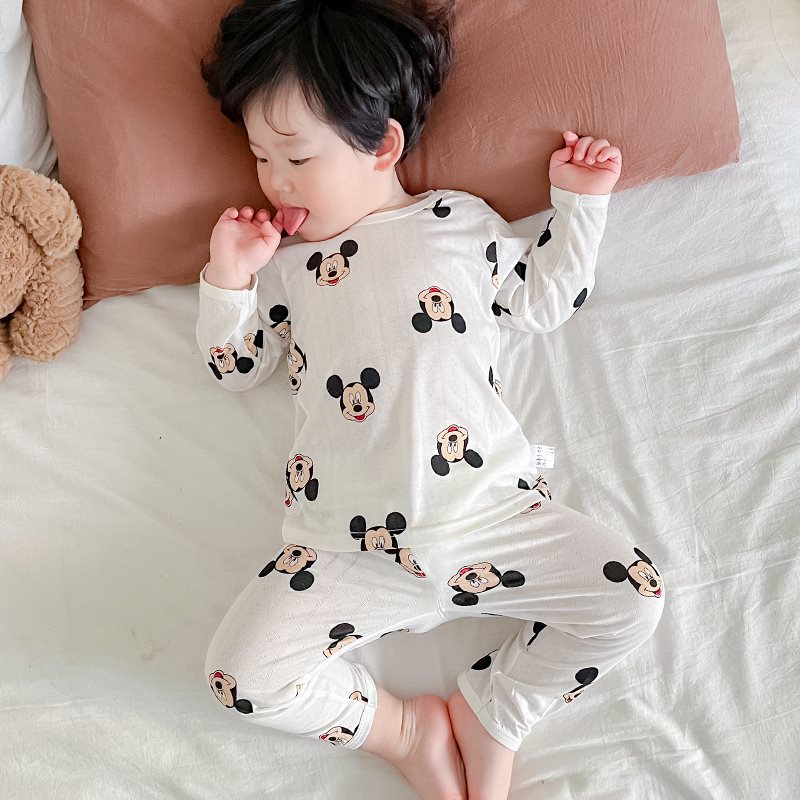 Children’s Thin Pajamas Summer Boys’ Air-conditioning Clothes Long Sleeve Ice Silk Spring and Autumn Girls’ Baby Home Clothes suit Cartoon