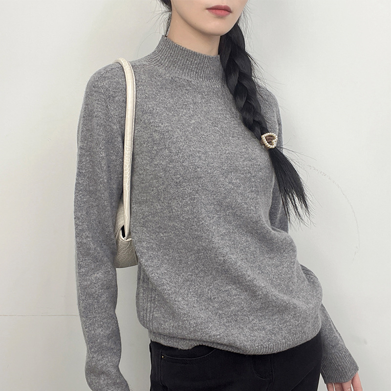 First-Line Garment Seamless Half-High Collar Sweater Women’s Autumn Pullover Drawdown Sweater Loose Thickened Knitted Base Shirt