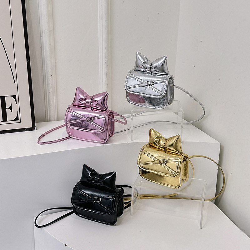 Korean Style Boys and Girls Shoulder Bag Western Style Solid Color Bow Children Crossbody Bag 2024 New Foreign Trade Children’s Bag