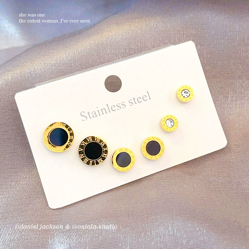 Light luxury Roman numerals hot titanium steel girl-like earrings