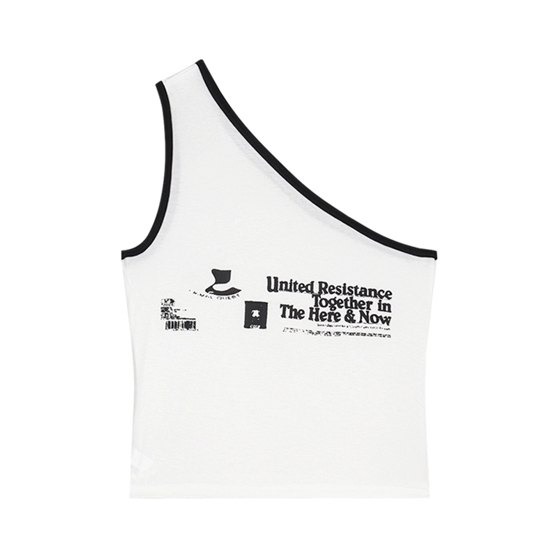 Letter printed off-shoulder slim fit outer top and vest