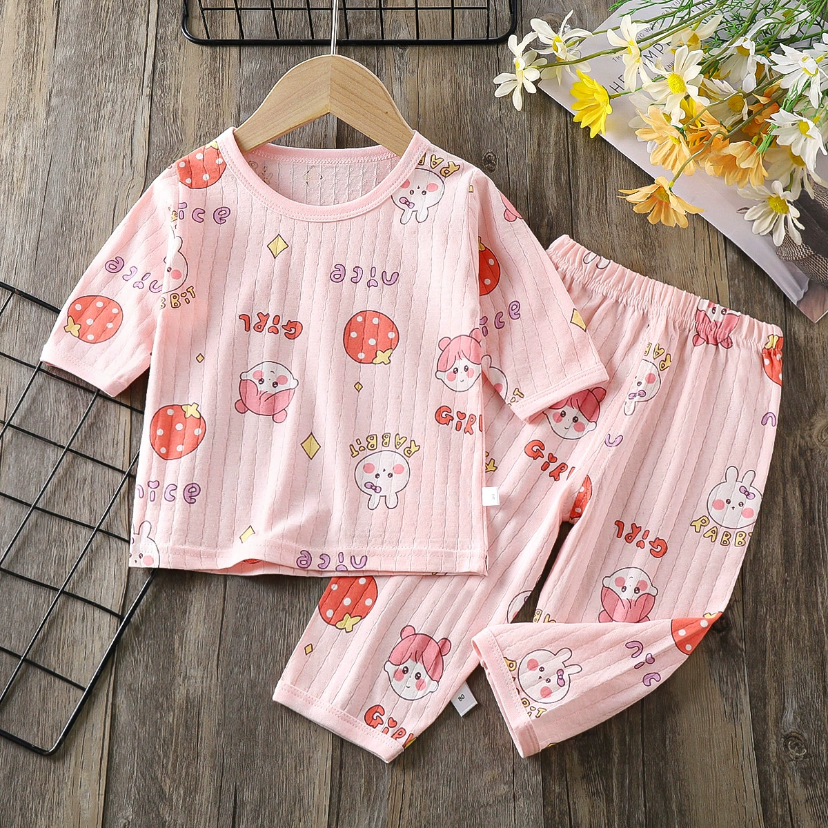 Pure cotton children’s three-quarter sleeve summer baby pajamas set