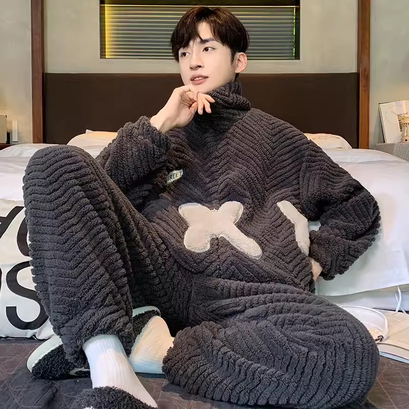 Autumn and winter pajamas men’s coral velvet thickened plus velvet teen boys’ flannel winter home wear set