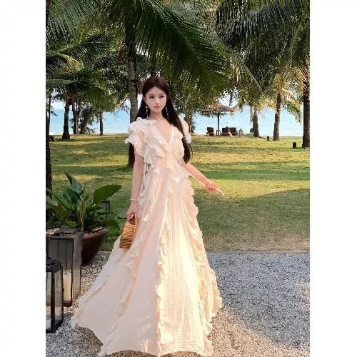 Can be worn outside with anti-exposure black short suspender wrapping breast