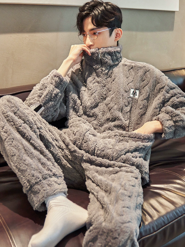 Pajamas for men 2024 new autumn and winter coral velvet thickened plus velvet flannel winter home wear set