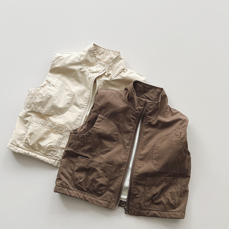 Boys’ workwear vest winter new children’s tops girls’ Korean style fleece-lined warm trendy cool vest children’s clothing