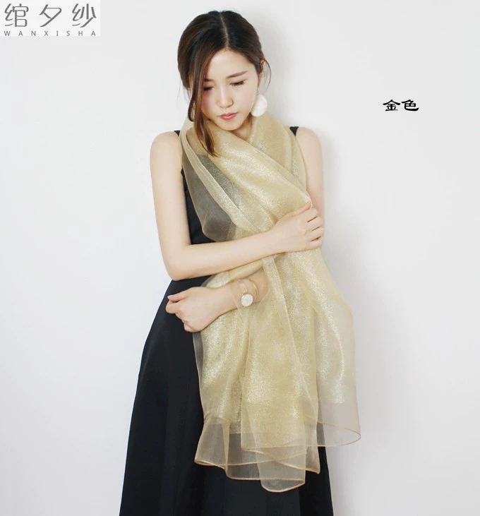 Golden double layer wedding dress shawl for women spring and autumn silk