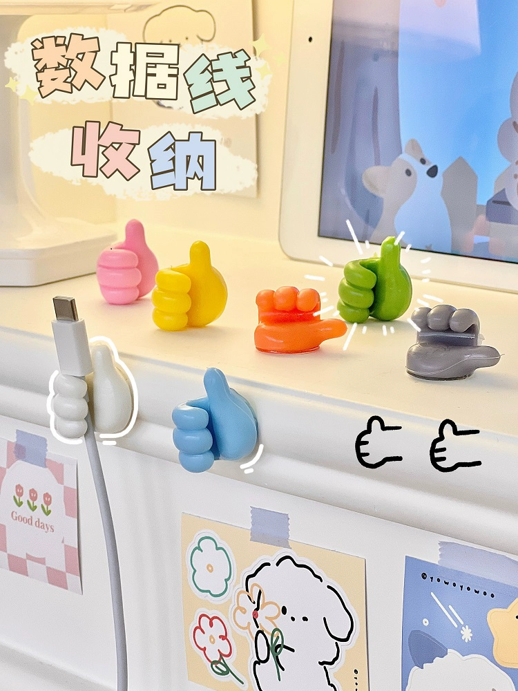 No punching wall hanging sticky hook funny thumb hook bathroom student dormitory desktop wall storage cable organizer for women