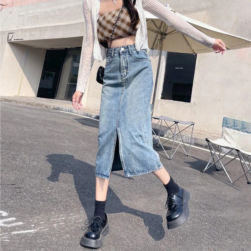 High Waist Slim Denim Skirt Women’s Spring Dress 2024 New Retro Split Mid-Length Hip Skirt