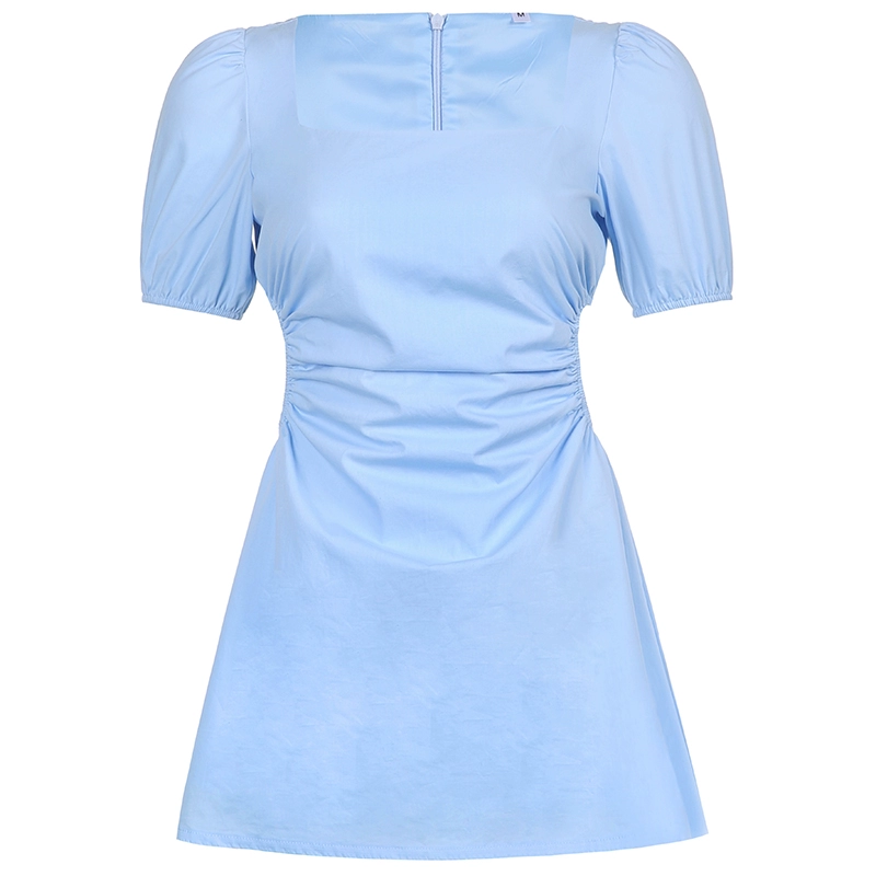 IUAE hollow waist exposed slim solid color short-sleeved dress