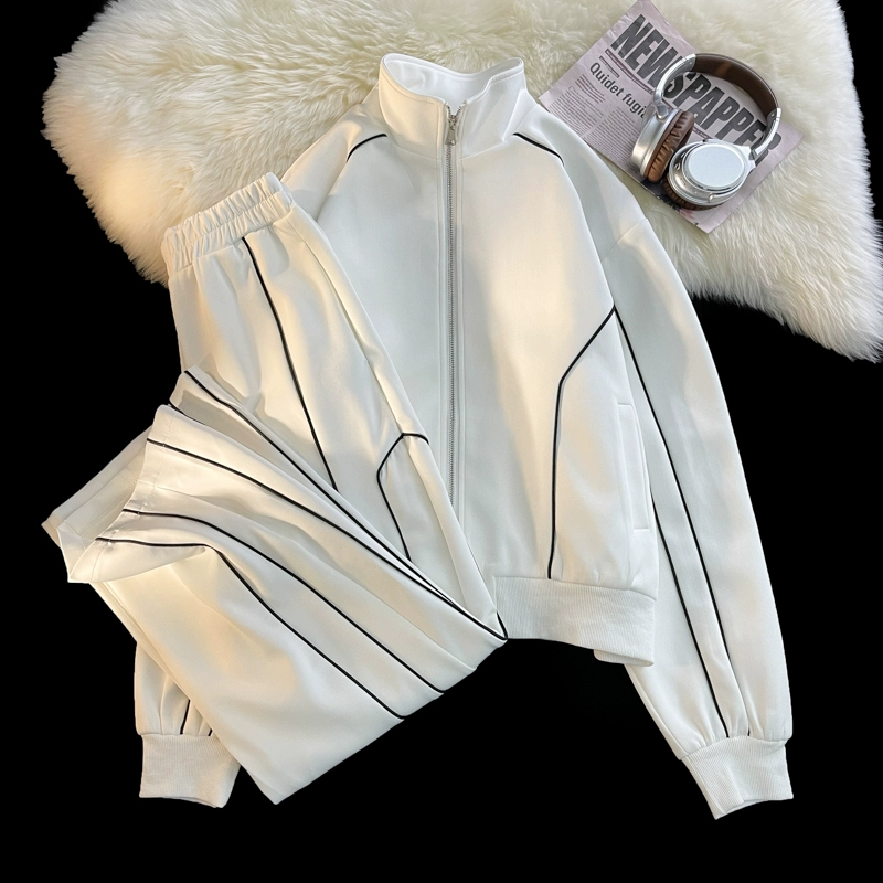 Early autumn stand-up collar jacket for men’s drooping wide-leg pants cardigan
