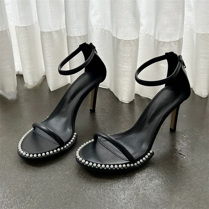Korean spring and summer new sandals round toe open toe with shallow mouth back zipper retro fairy style high heels women’s shoes