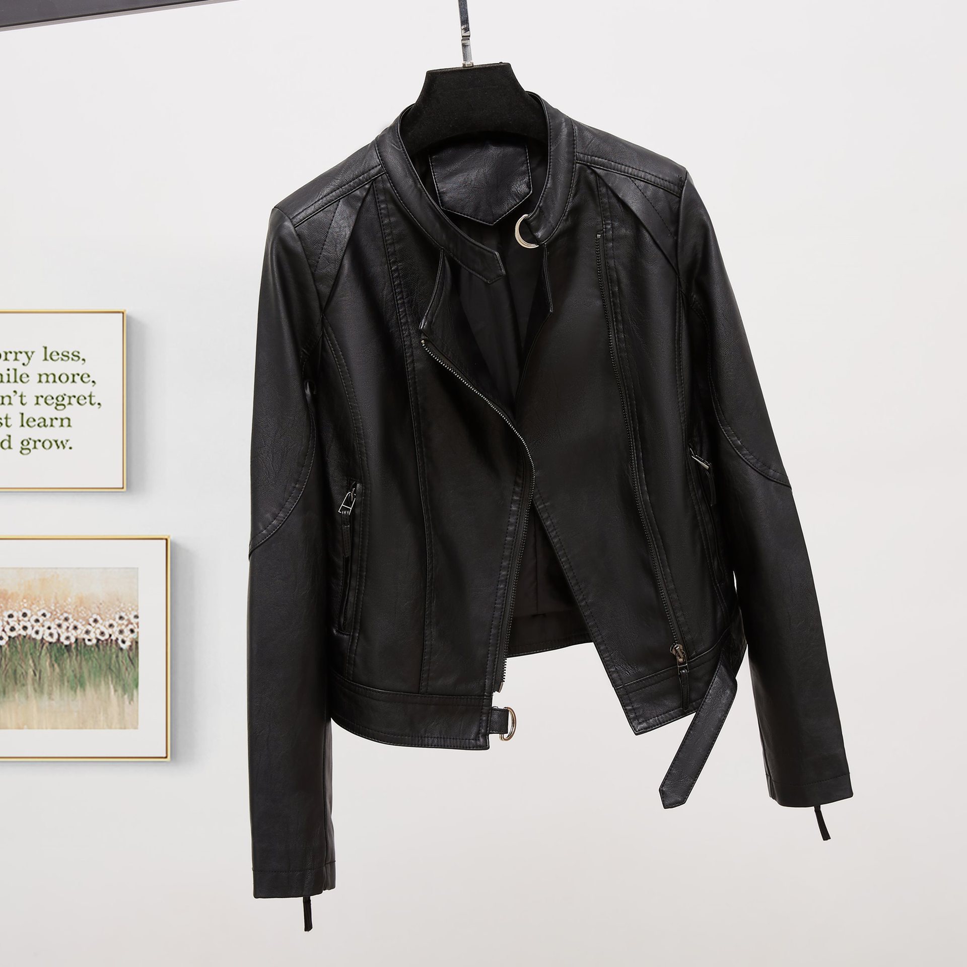 Small leather women’s coat 2024 new slim motorcycle short spring and autumn small black pu leather jacket