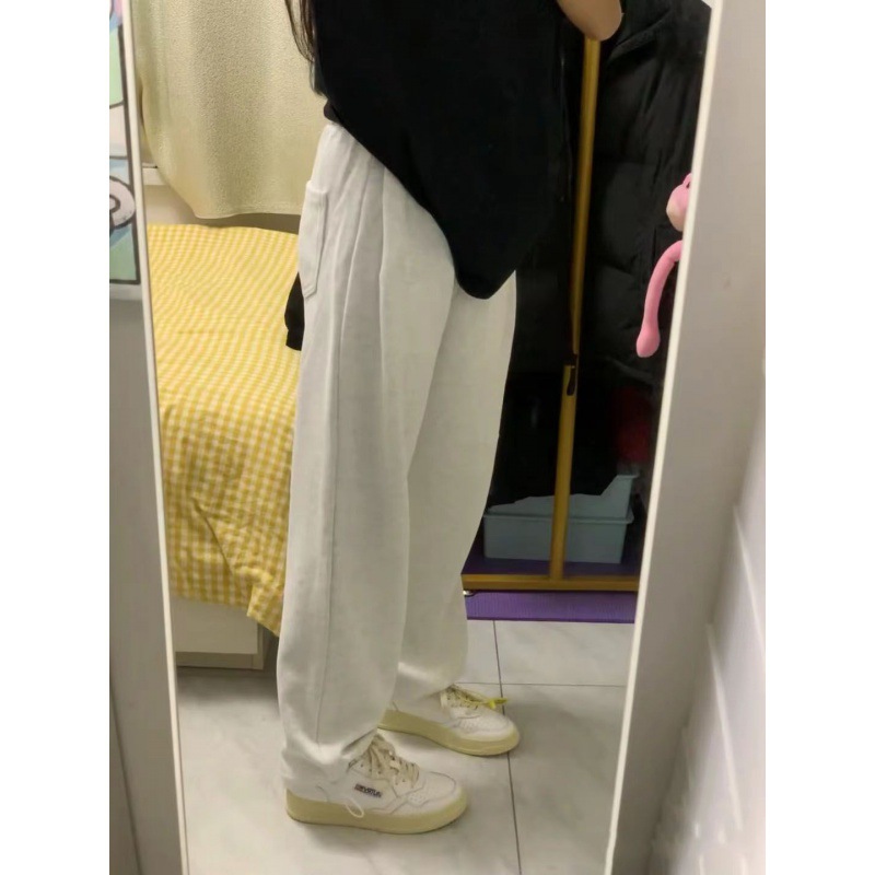 Early Spring New Women’s Trousers High Waist Sports Pants Leg-toe Loose Straight Dipped Wide Leg White Grey Casual Pants