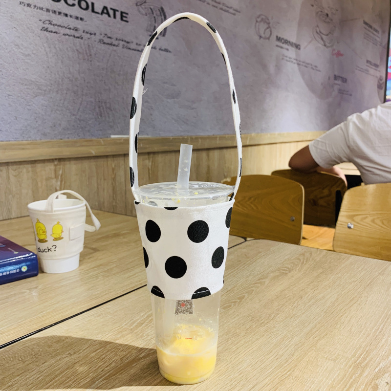 Beverage bag polka dot cup set polka dot canvas tote bag circle milk tea set Coffee hand Cup bag