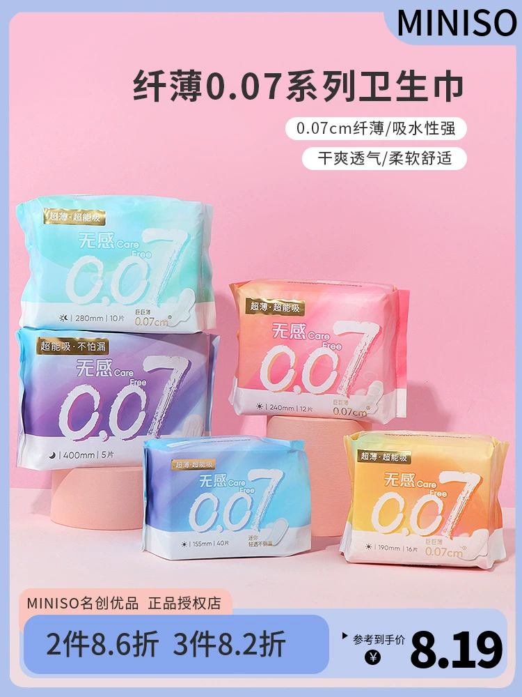 MINISO Mingyin Youpin ultra -thin 0.07 series sanitary napkin day and night with pads and portable breathable aunt towel