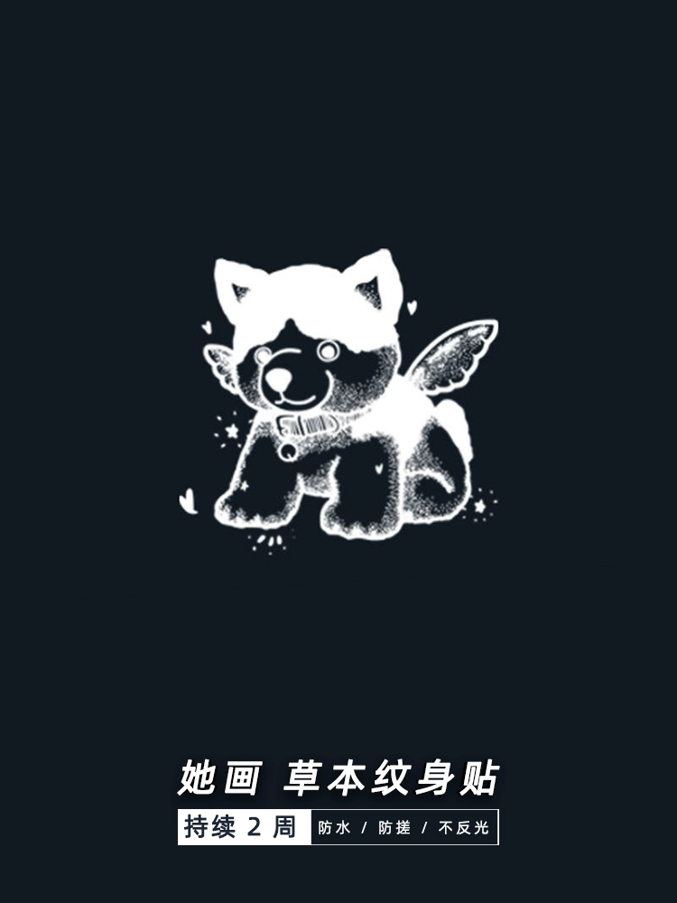 She draws cute dog herbal tattoo stickers semi-permanent stickers waterproof long-lasting female wrist male single cartoon