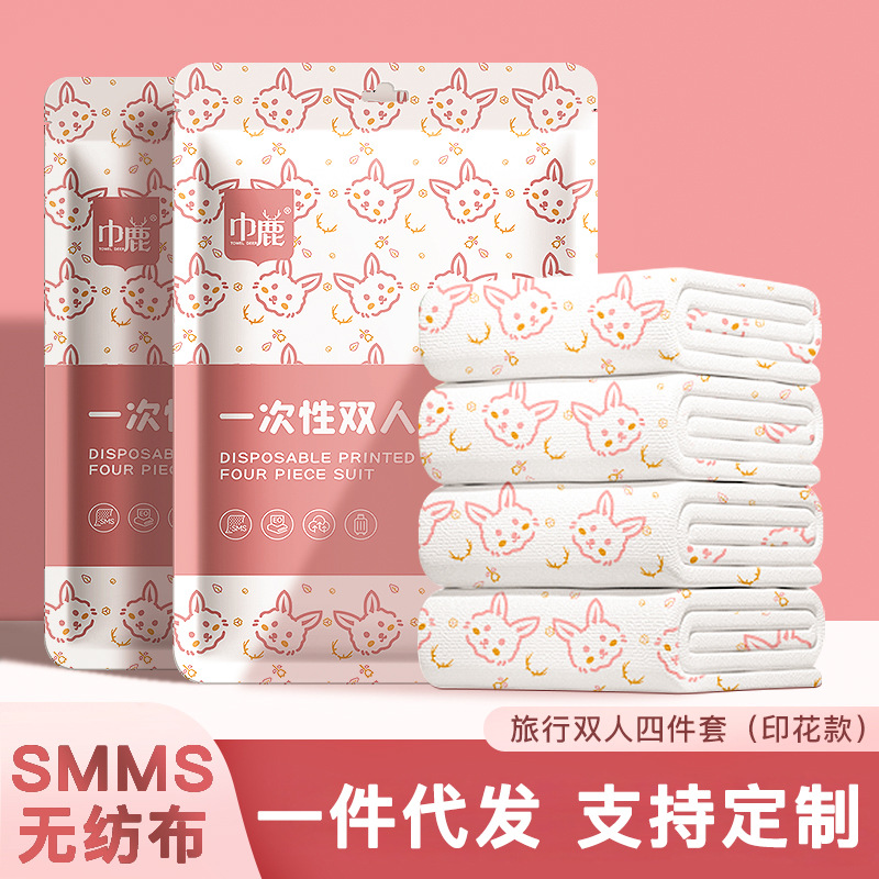 Travel business trip disposable bed sheet quilt cover pillowcase thickened hotel dirty bed four-piece set Rabbit printed bed sheet