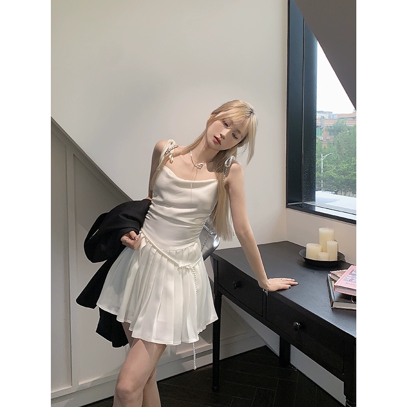 Girls’ French style small black dress summer Korean style elegant mother and daughter suspender skirt mesh pettiskirt beach holiday parent-child skirt